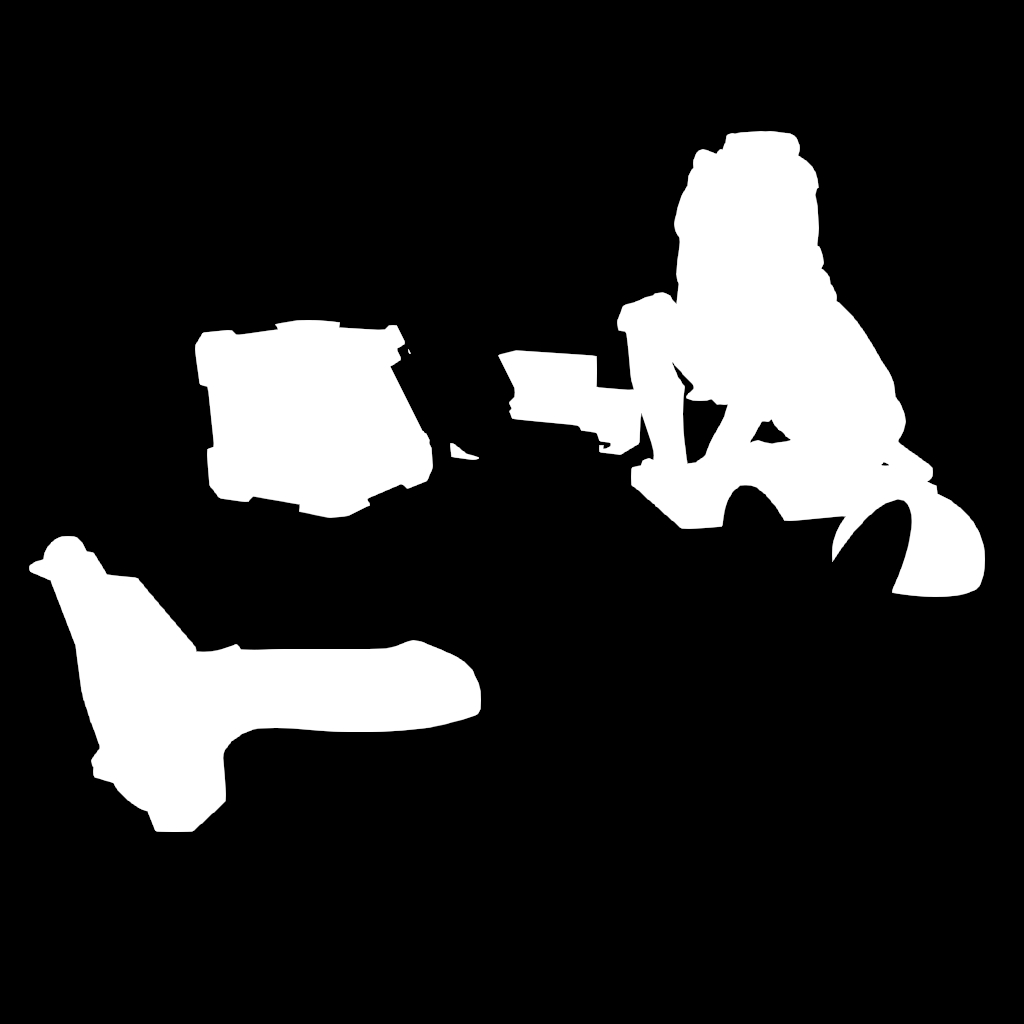 Renders silhouettes of π³Outline3D objects with depth testing, ensuring outlines only appear where objects are visible (not occluded by other geometry). This creates more accurate masks for complex scenes.
